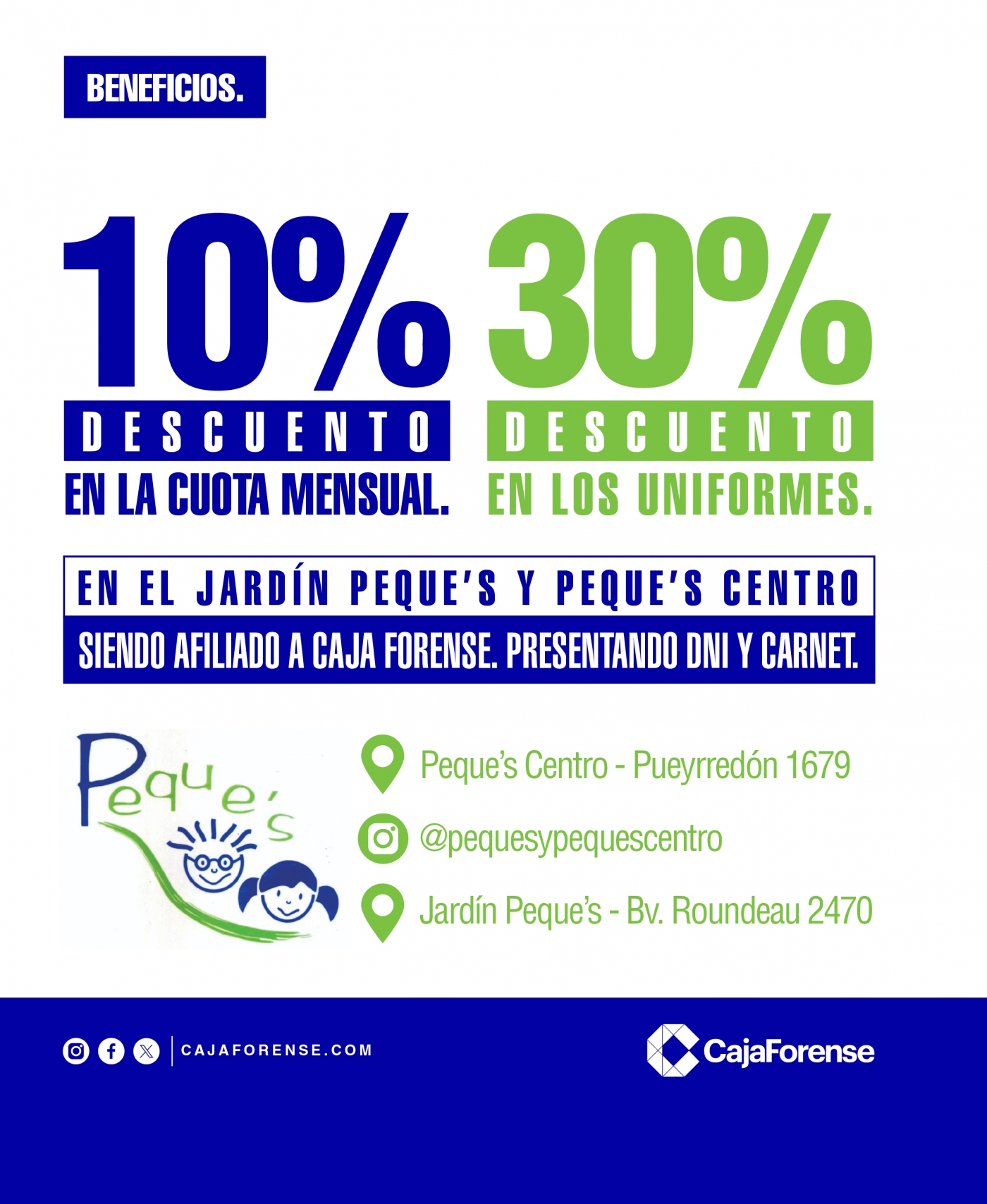 Los afiliados y afiliadas de Caja Forense pueden acceder a importantes descuentos en el Jardín Peque’s y Peque’s Centro.